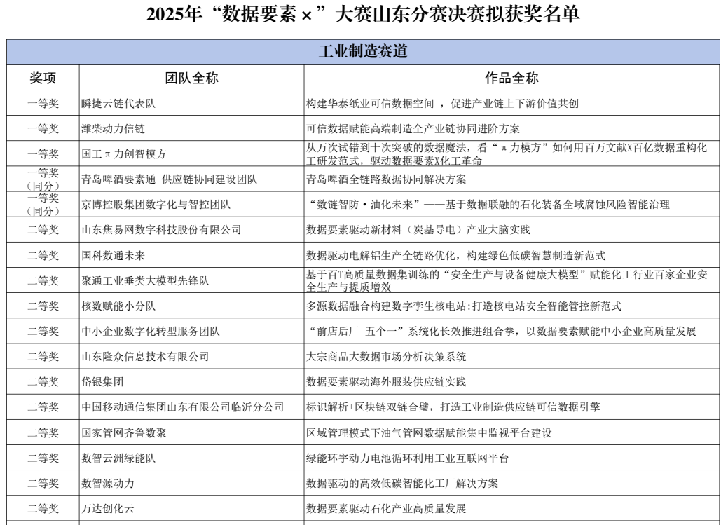 國工智能榮獲2025年“數(shù)據(jù)要素X”大賽山東分賽決賽工業(yè)制造賽道一等獎(jiǎng)