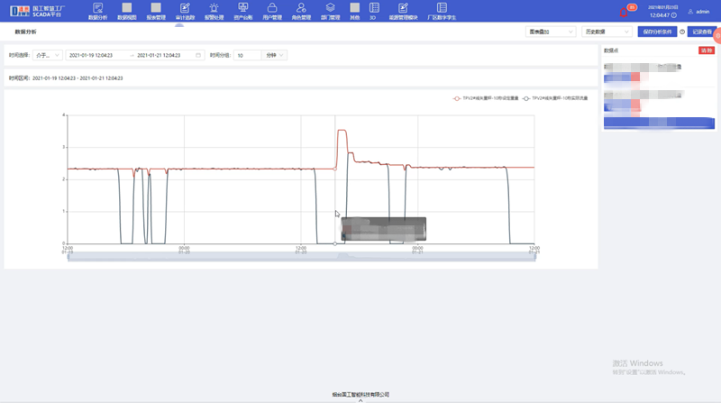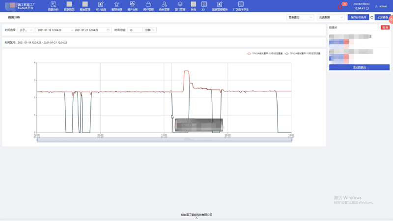 國工智能工業(yè)物聯(lián)網(wǎng)平臺具有數(shù)據(jù)監(jiān)視以及數(shù)據(jù)趨勢分析的基本功能,我們可以通過數(shù)據(jù)趨勢分析功能對矢重秤歷史數(shù)據(jù)以及實時數(shù)據(jù)進行查看、追溯。