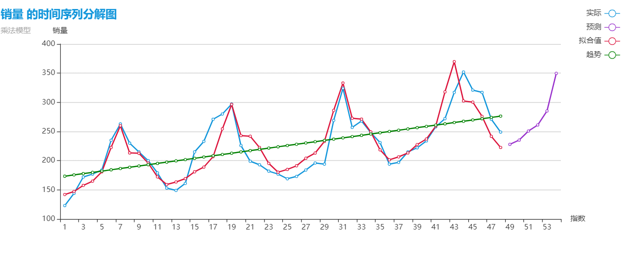 模型的選擇:當(dāng)數(shù)據(jù)中季節(jié)性模式的量值取決于數(shù)據(jù)的量值時,選擇乘法模型。當(dāng)數(shù)據(jù)中的季節(jié)性模式的量值不取決于數(shù)據(jù)的量值時,選擇加法模型。