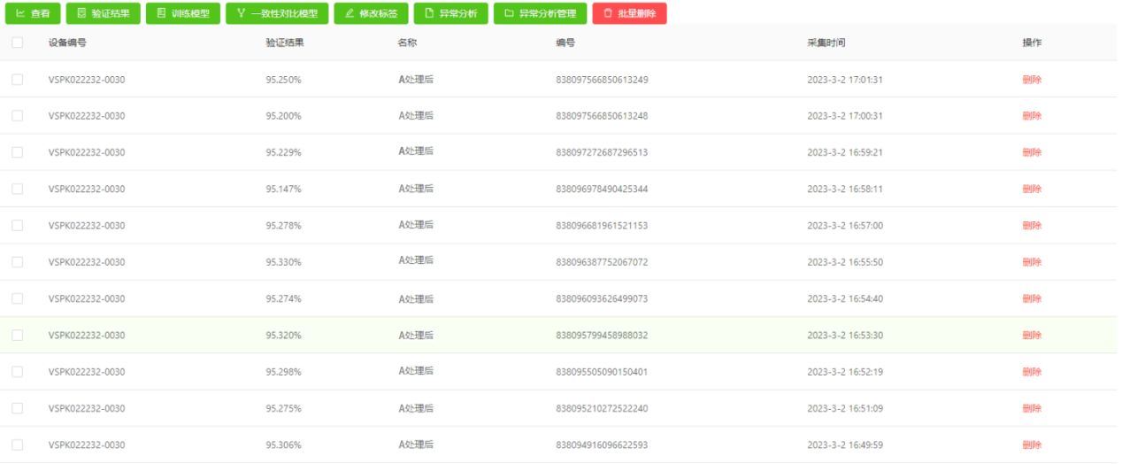 驗證方案:將A處理前溶液數據訓練一致性模型,取A處理前后溶液數據進行檢測驗證。