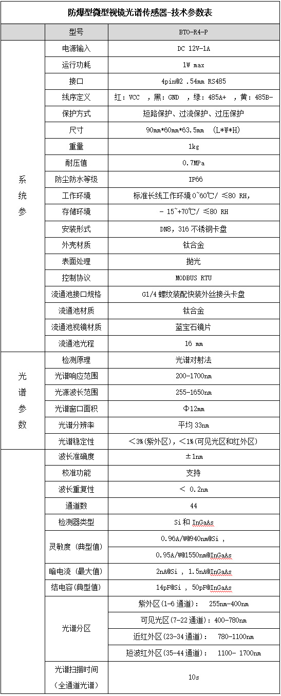 根據(jù)客戶現(xiàn)場情況,我們采用的是防爆型視鏡光譜傳感器。防爆型微型視鏡光譜傳感器對(duì)于傳統(tǒng)的視鏡、光譜傳感器分離的產(chǎn)品,該傳感器具有安裝更加方便,受環(huán)境干擾更小,使用安全性更高特點(diǎn),并且不受游離堿和溫度等因素的影響,在檢測(cè)有效氯濃度的同時(shí)也能檢測(cè)游離堿濃度,更有利于實(shí)時(shí)準(zhǔn)確判斷反應(yīng)進(jìn)度和反應(yīng)終結(jié)點(diǎn)。