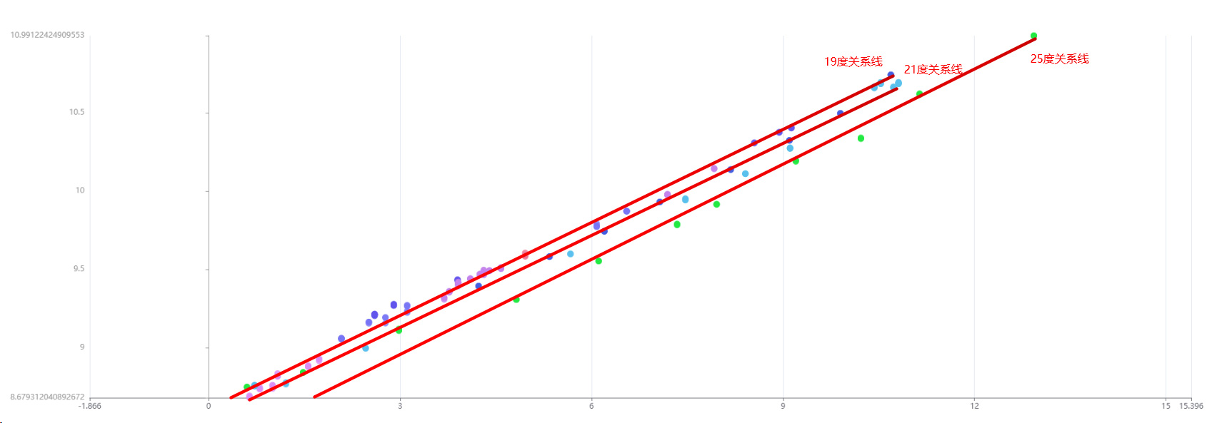 將次氯酸鈉中有效氯含量和游離堿含量多個(gè)批次分別進(jìn)行采集數(shù)據(jù),有效氯含量不受溫度影響,直接用線性回歸做模型訓(xùn)練即可,游離堿會(huì)受溫度影響,我們?nèi)×藥讉€(gè)溫度下的堿的數(shù)據(jù)找出關(guān)系溫度關(guān)系,增加了溫度補(bǔ)償,溫度變化大的情況下也能給出游離堿準(zhǔn)確結(jié)果。