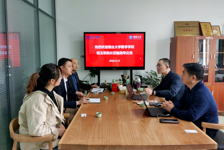 5月12日上午,煙臺大學數學學院楊玉軍院長、陳傳軍副院長、李丹博士一行來公司交流座談產學研合作,公司執行董事CEO柳彥宏、運營副總劉勇波參加座談。
